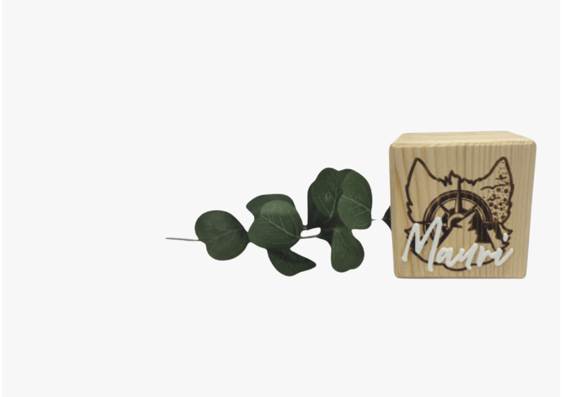 Holzkiste mit Klappdeckel, personalisiert mit Namen, Geburtsdaten und dem Sternzeichen als Sternbild.