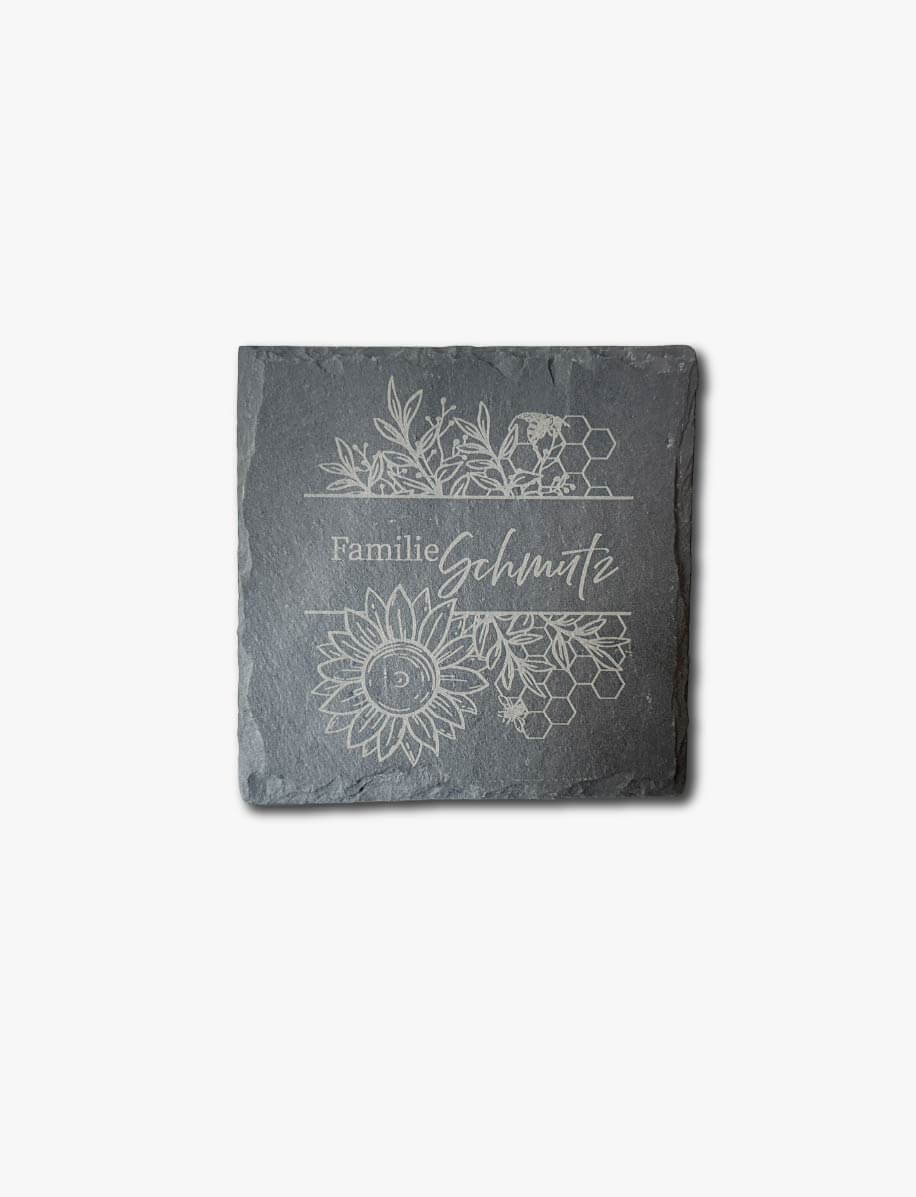 Jeder Schieferuntersetzer trägt die Spuren fer Natur – rau, einzigartig und voller Charakter. Mit einer individuellen Gravur verwandelt sich das Stück Stein in ein kleines Kunstwerk, das Getränke schützt und Geschichten erzählt. Steinpoesie bringt ein Stück Erdverbundenheit auf deinen Tisch und verzaubert jeden Alltagsschluck mit einem Hauch Magie. 4er Set.